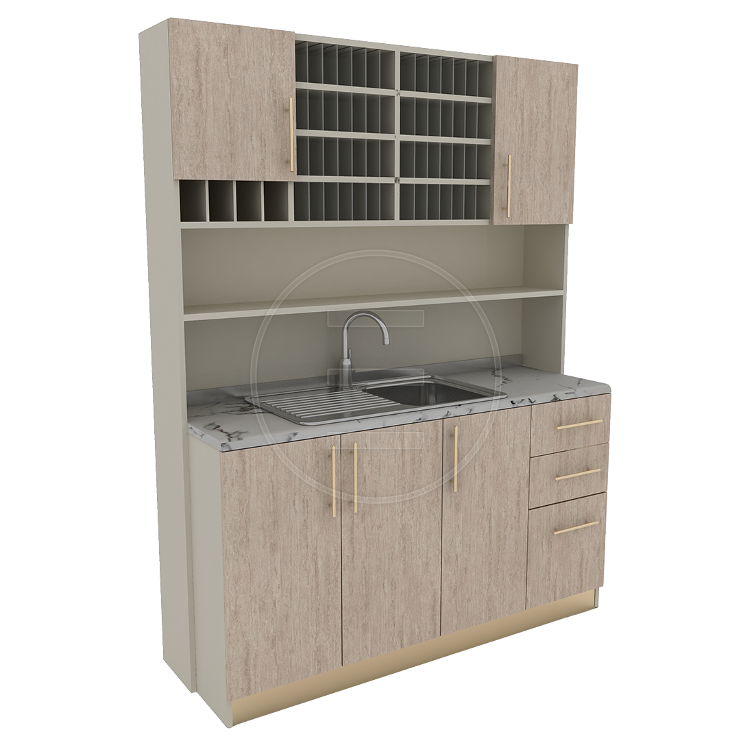 Gelamineerde houten bovenblad met kraanset.